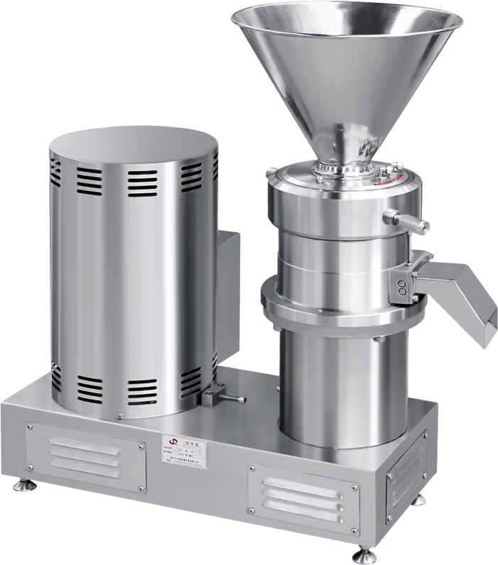 膠體磨是由電動機通過皮帶傳動帶動轉齒(或稱為轉子)與相配的定齒(或稱為定子)作相對的高速旋轉,其中一個高速旋轉,另一個靜止,被加工物料通過本身的重量或外部壓力(可由泵產生)加壓產生向下的螺旋沖擊力,透過定、轉齒之間的間隙(間隙可調)時受到強大的剪切力、摩擦力、高頻振動、高速旋渦等物理作用,使物料被有效地乳化、分散、均質和粉碎,達到物料超細粉碎及乳化的效果。破碎室設有三道磨碎區,一級為粗磨碎區,二級為細磨碎區,三級為超微磨碎區,通過調整轉子的間隙,能緊湊運轉,具有平穩、噪音小、耐腐蝕、易清洗、維修方便等特點。目前是國內濕法粉碎理想的設備。